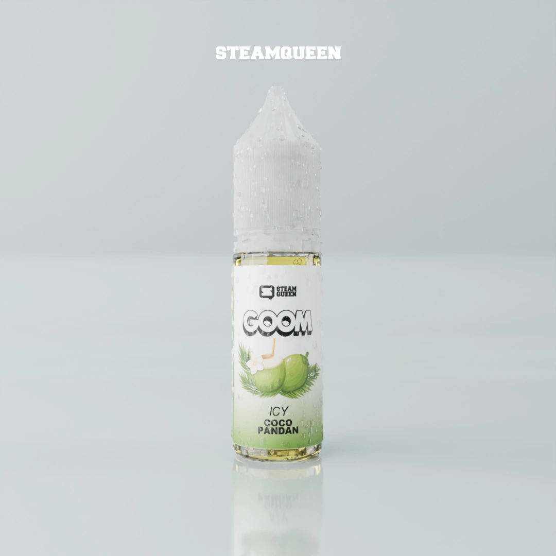 GOOM ICY COCOPANDAN 15ML perpaduan pandan dan kelapa segar, dengan efek icy menyegarkan. Nikotin 30MG, kemasan 15ML.